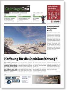 Die Grüninger Post erscheint 6 x im Jahr und wird gratis in sämtliche Haushalte von Grüningen verteilt.
