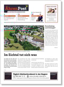 Wir sind die Herausgeberin von vier Lokalzeitungen, die in ihrer jeweiligen Gemeinde fest verankert und beliebt sind. Sie alle verfügen über das gleiche Basis-Layout und über identische Inseratenformate. Das macht eine Buchung auch über mehrere Titel hinweg spielend einfach.